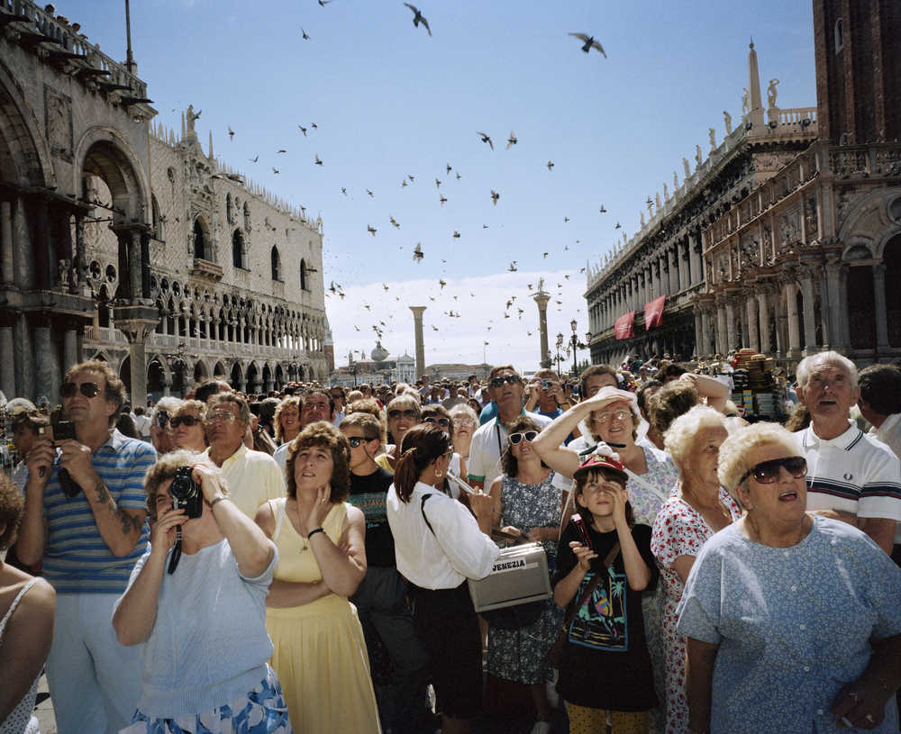 Gli anni ottanta vivono nel confronto tra le grandi fotografie di Martin Parr che documentano la definitiva affermazione del turismo di massa nel nostro paese, tra bellezza dei luoghi e cattivo gusto dei visitatori e quelle di Patrick Zachmann sulla camorra napoletana.
